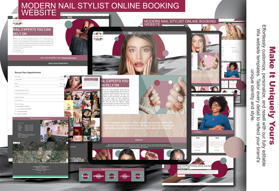These professionally designed Wix microsites come with essential pages and features tailored for nail stylists, including: