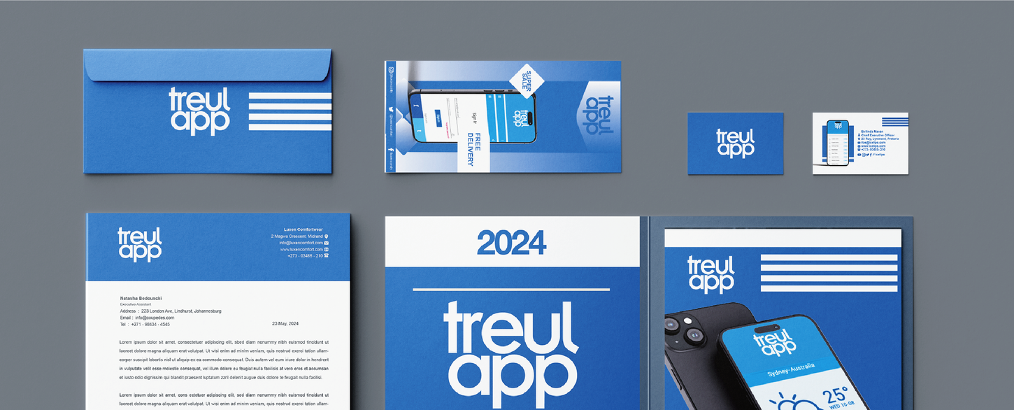 With a focus on modernity and a deep understanding of Treul App's unique brand identity, I took on the challenge of designing their brand stationary to embody the essence of reliability, professionalism, and innovation. Treul App's commitment to providing a seamless on-demand service inspired the creation of tangible assets that not only showcase their offerings but also reinforce their brand image. Drawing from the brand's color palette of blue and white, these hues were incorporated into the stationary design to evoke trust, clarity, and efficiency. The use of blue, a color often associated with reliability and professionalism, reinforces Treul App's dedication to delivering a dependable service. For the typography and layout, a modern and streamlined approach was adopted to reflect Treul App's forward-thinking nature. Clean lines, elegant fonts, and carefully curated design elements ensure a cohesive and visually appealing set of assets. Throughout the design process, the focus remained on creating stationary that embodies Treul App's brand identity and resonates with its target audience. By balancing modernity with professionalism and innovation with tradition, tangible assets were crafted that capture the essence of Treul App and set the stage for its continued success in the on-demand service market. Collaborating with Treul App on this project was an honor, and I am proud to have played a part in bringing their vision to life through thoughtful and innovative design. The brand stationary stands as a powerful representation of Treul App's commitment to reliability, professionalism, and innovation, providing clients and stakeholders with tangible assets that reflect the brand's values and ethos.